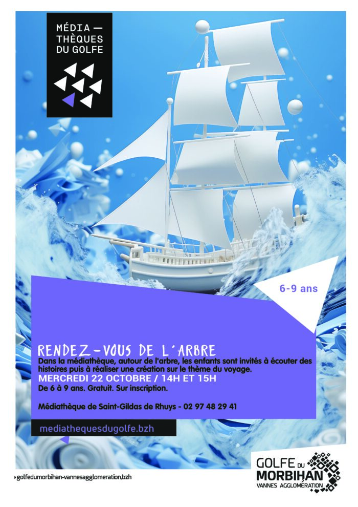 MERCREDI 22 OCTOBRE / 14H ET 15H – Dans la médiathèque, autour de l’arbre, les enfants sont invités à écouter des histoires puis à réaliser une création sur le thème du voyage. De 6 à 9 ans. Gratuit. Sur inscription.