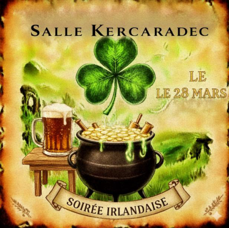 Venez nous rejoindre aux couleurs irlandaises vert, orange et blanc pour une soirée festive et conviviale. Inscription obligatoire avant le 14 mars 2026. Les bulletins d’inscription peuvent être obtenus sur demande à l’adresse email cercle.amical.saint.gildas@gmail.com .