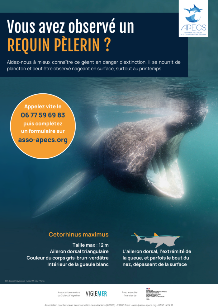 L’association porte notamment un programme de recensement des observations de requins pèlerins à l’échelle nationale. Cette action, fondée sur la participation des acteurs de la vie maritime, permet d’effectuer un suivi de la présence de cette espèce menacée.